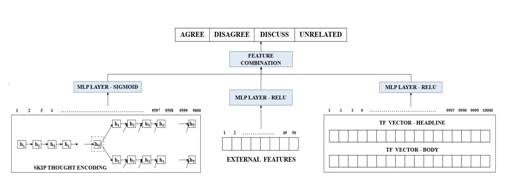 Description: Designed a hybrid feature fusion model for fake-news stance detection, integrating neural embeddings, statistical NLP features, and custom feature engineering within a deep neural network layer for improved stance classification accuracy.
