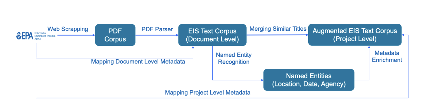Description: Led the development of a specialized text corpus of over 28,000 Environmental Impact Statements (EIS), enriched with structured metadata and named entities for enhanced information retrieval. This corpus supports the development of AI-driven tools designed to improve the efficiency of NEPA reviews and aid in environmental decision-making.